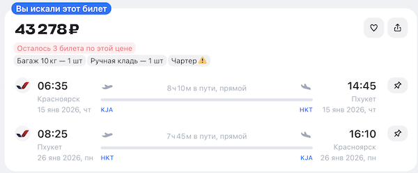Прямые чартерные рейсы на Пхукет из Омска, Новосибирска, Красноярска и Челябинска от 43.000 рублей туда-обратно.