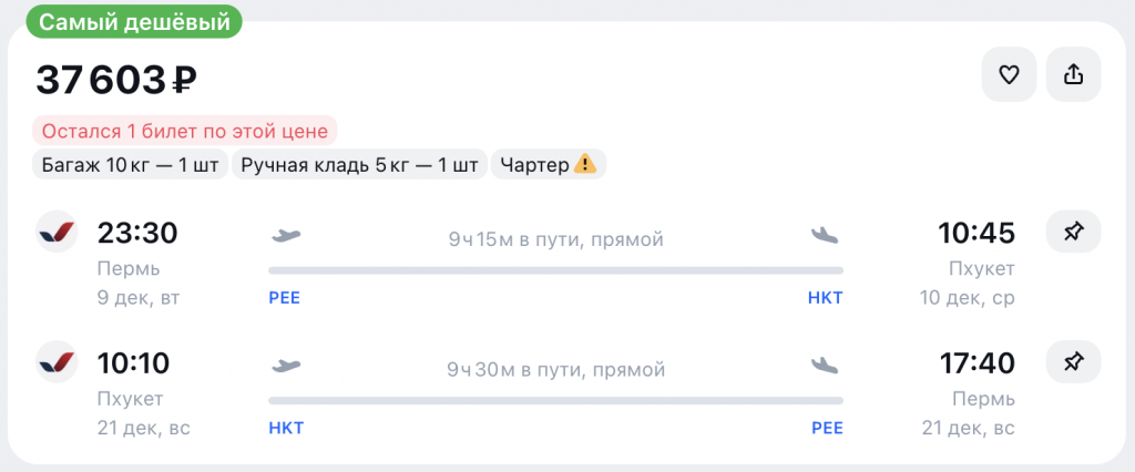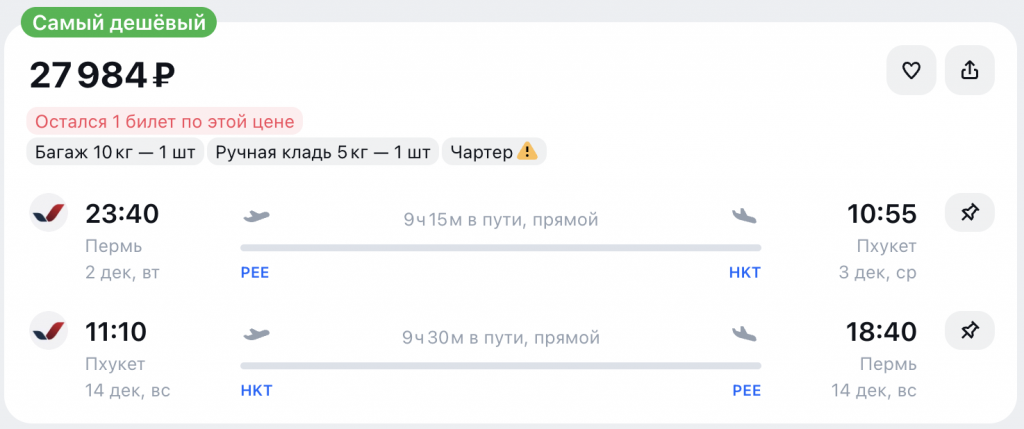 Из Перми на Пхукет со 2 по 14 декабря или с 9 по 21 декабря