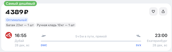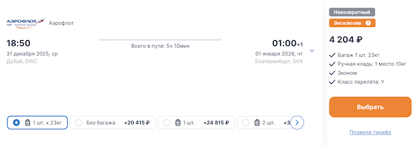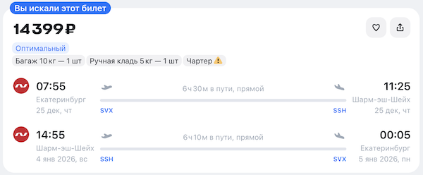Из Екатеринбурга 26 декабря (билеты на сайте туроператора Библио-Глобус)