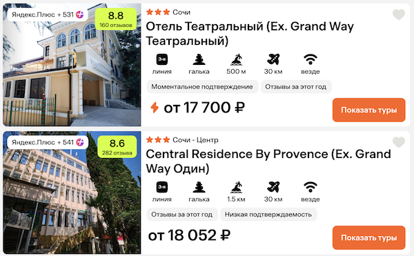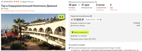 Стоимость в примерах указана за одного человека при условии поездки вдвоем, стоимость туров для одного человека можно посмотреть здесь или на страницах отелей.