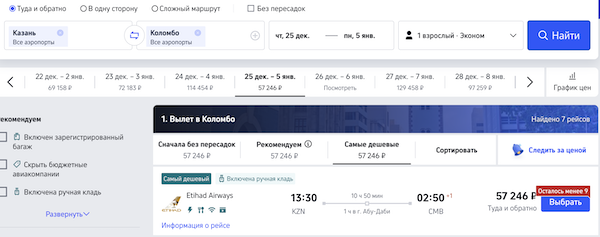 Рейсы выполняются с пересадкой в Абу-Даби.