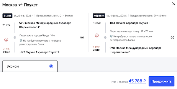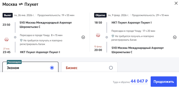 Из Москвы на Пхукет в январе-феврале от 44.000 рублей туда-обратно.
