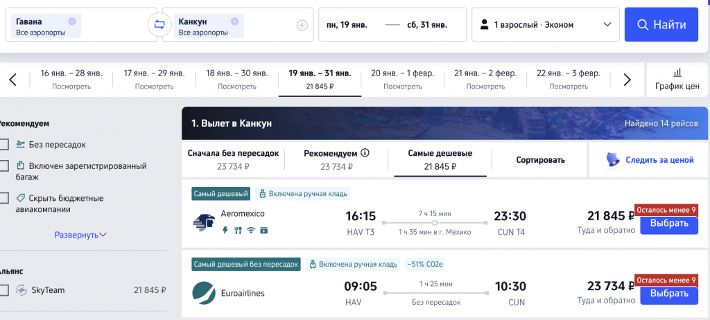 Билеты из Гаваны в Канкун на трип.ком, подбирайте нужные даты на трип.ком
