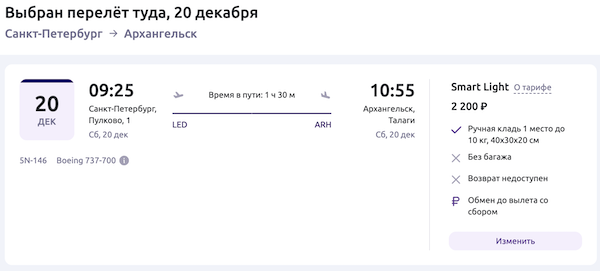 Из Санкт-Петербурга в Архангельск на выходные 3.800 рублей туда-обратно.