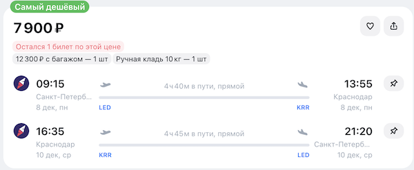 Горящие билеты из Санкт-Петербурга в Краснодар: 3.700 рублей в одну сторону, от 7.900 туда-обратно.