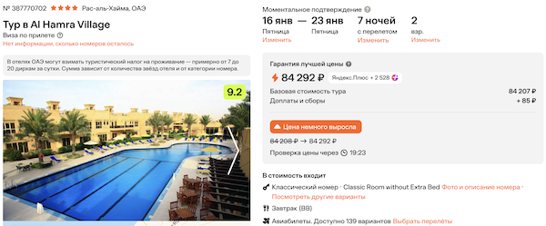 Al Hamra Village 4* с завтраками 42.100 рублей за человека (84.300 рублей за двоих)