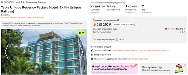 Unique Regency Pattaya Hotel 4* с завтраками 105.100 рублей за человека (210.200 рублей за двоих)