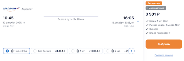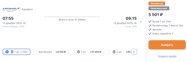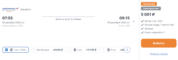 Сочи в декабре: билеты из Уфы 3.500 рублей в каждую сторону, из Новосибирска от 5.000 рублей.