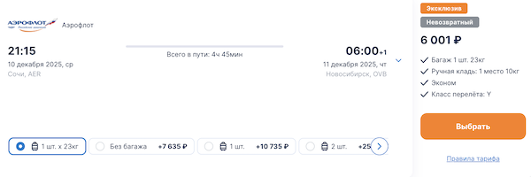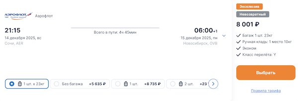 Из Новосибирска много дат в декабре