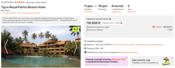 На Шри-Ланку в 5*: туры из Москвы от 59.200 рублей за человека.