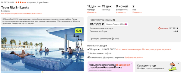 Riu Sri Lanka 5* все включено 93.600 рублей за человека (187.300 рублей за двоих)