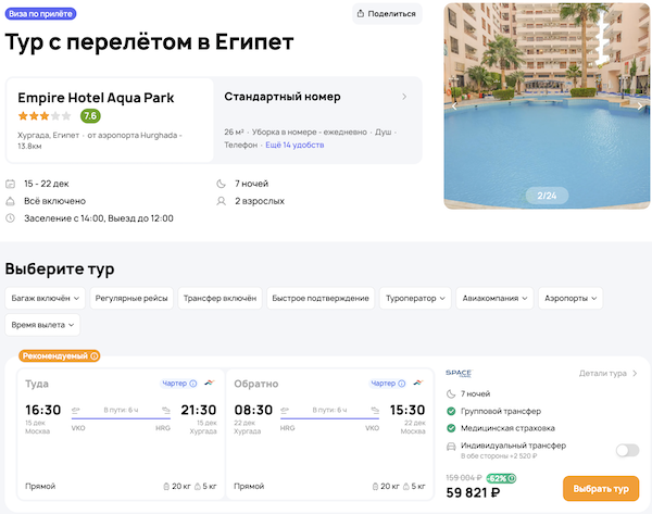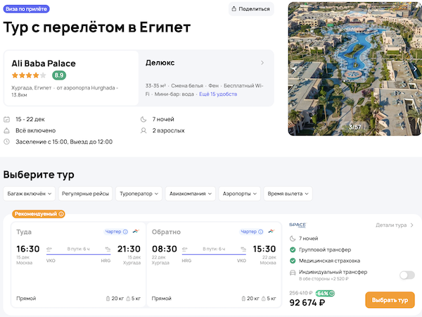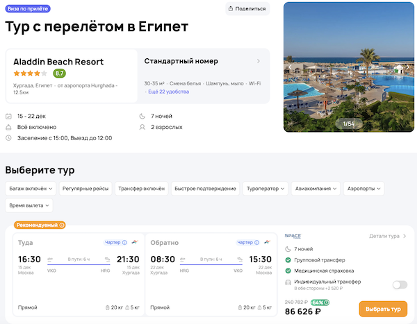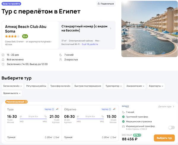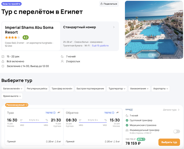 — прямой перелет в Хургаду и обратно, авиакомпания Red Sea;