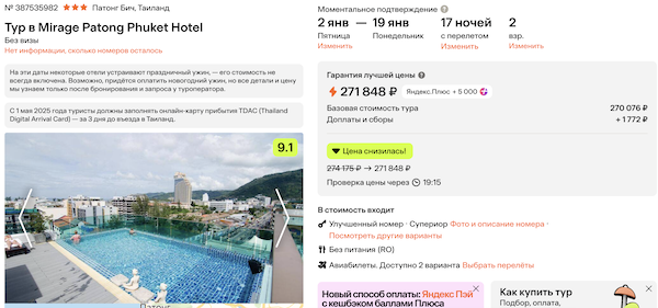 Новогодние каникулы на Пхукете: туры из Москвы от 123.200 рублей за человека.