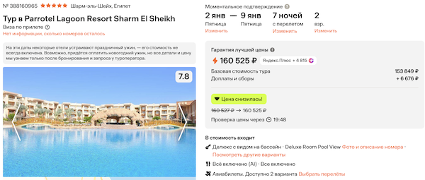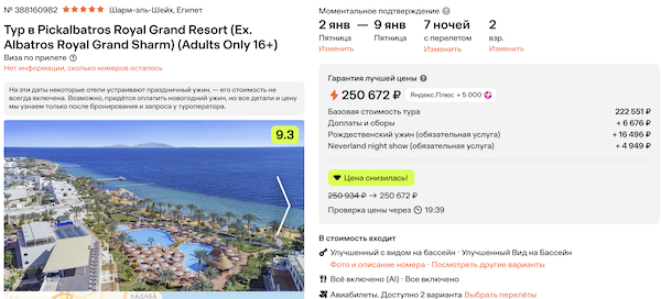 Пример туров с гарантированными местами в отелях