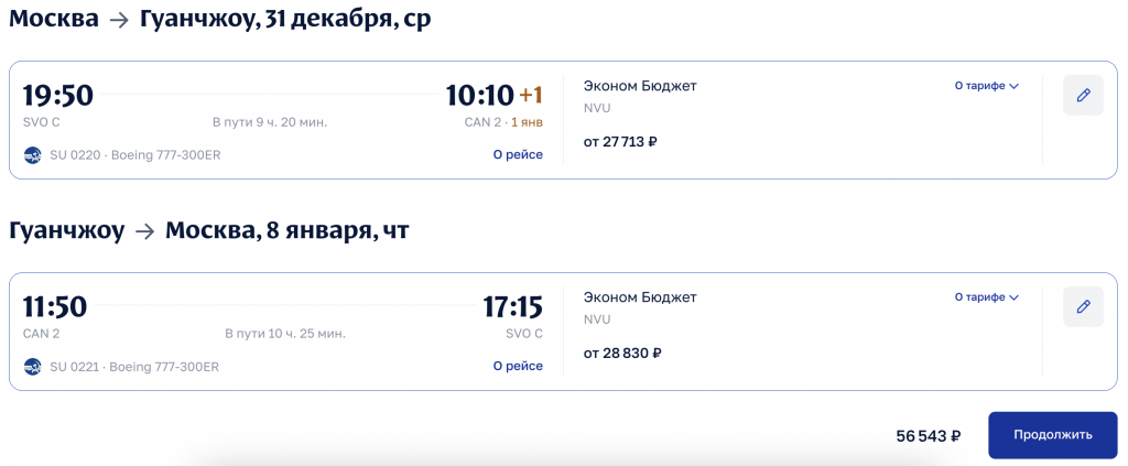 Новогодние каникулы в Китае: прямые рейсы Аэрофлота в Гуанчжоу или Шанхай от 56.400 рублей туда-обратно.