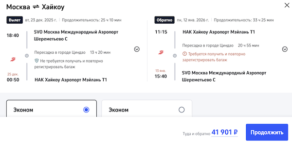 Новый год на Хайнане: билеты из Москвы в Хайкоу от 41.900 рублей туда-обратно.