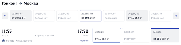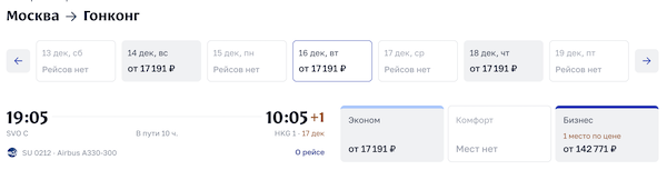 Прямые рейсы Аэрофлота из Москвы в Гонконг 36.700 рублей туда-обратно.