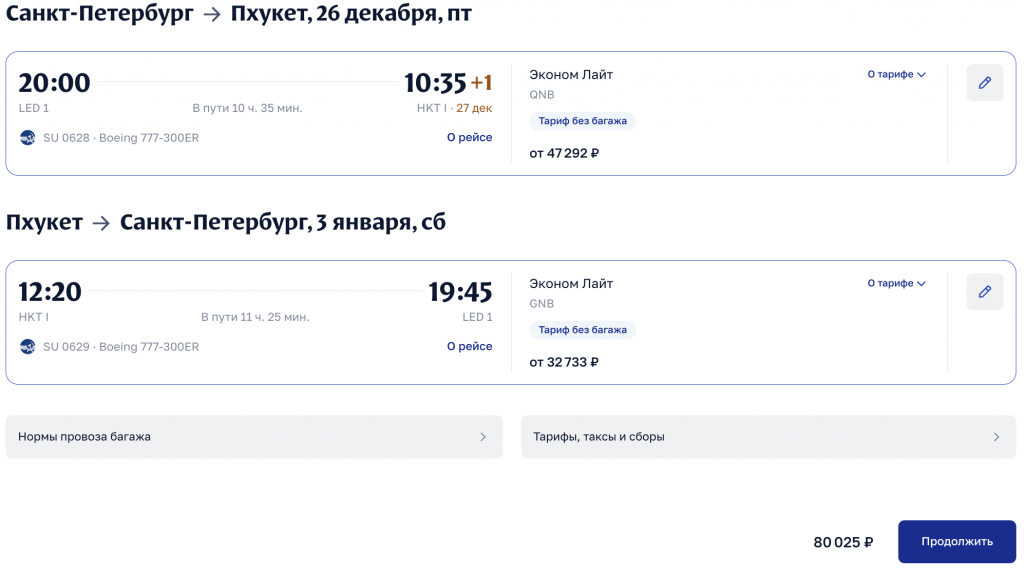 Новый год на Пхукете: прямые рейсы Аэрофлота из Санкт-Петербурга 80.000 рублей туда-обратно.