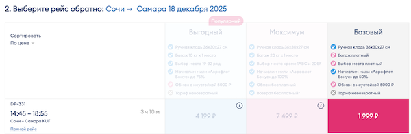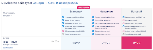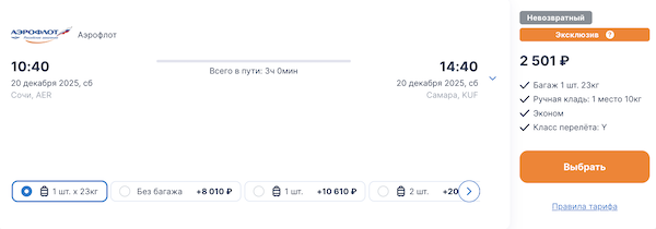 Из Самары рейсами Победы 16, 18 или 20 декабря