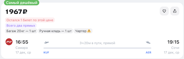 Горящие билеты между Самарой и Сочи от 2.000 рублей в каждую сторону.
