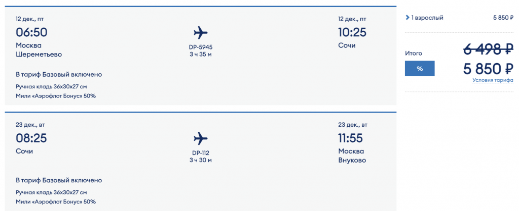 Из Москвы в Сочи 5.900 рублей туда-обратно
