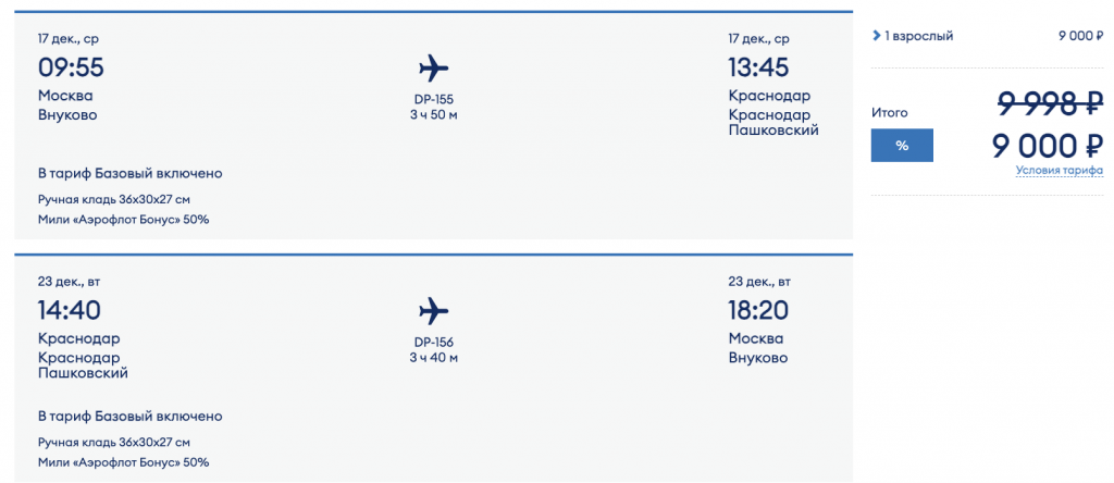 Из Москвы в Краснодар 9.000 рублей туда-обратно
