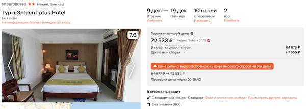 Стоимость в примерах указана за одного человека при условии поездки вдвоем. Стоимость туров для 1 человека можно посмотреть здесь или на странице отелей, изменив количество туристов.