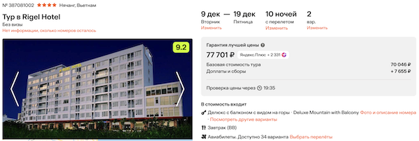 Туры из Москвы во Вьетнам от 36.200 рублей за человека.