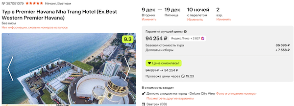 Premier Havana Nha Trang Hotel 5* с завтраками 47.100 рублей за человека (94.300 рублей за двоих)