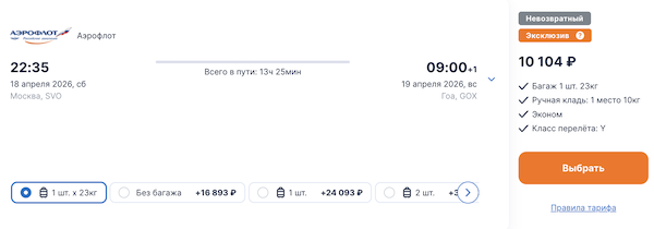Билеты из Москвы в Гоа весной от 36.000 рублей туда-обратно.