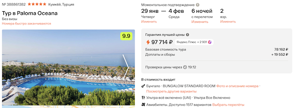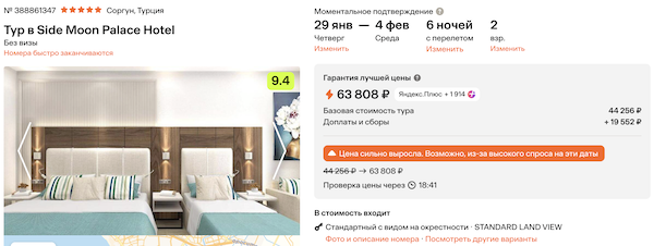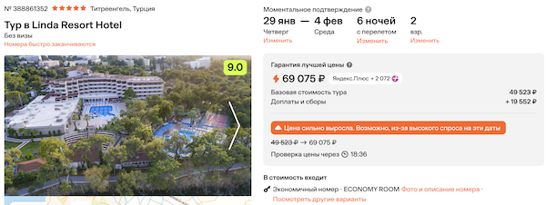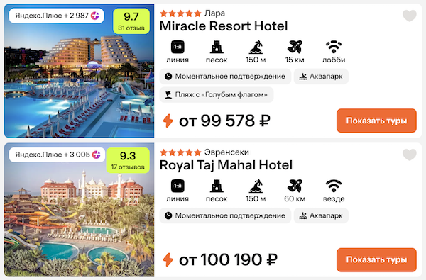 Стоимость в примерах указана за одного человека при условии поездки вдвоем, стоимость туров для одного человека можно посмотреть здесь или на страницах отелей.