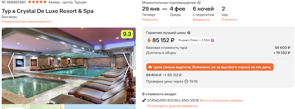 Crystal De Luxe Resort & Spa 42.600 рублей за человека (85.200 рублей за двоих)