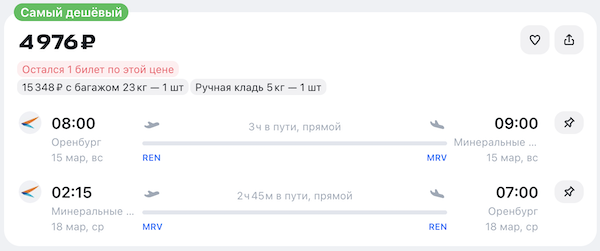 Как забронировать: перейдите по ссылкам в примерах или выберите другие даты на авиасейлс.