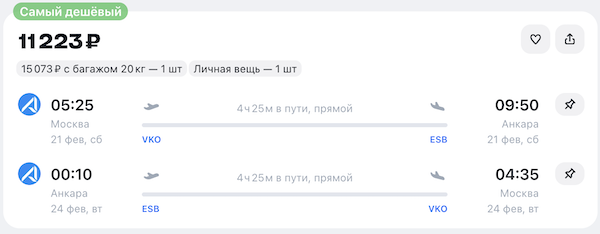 В Турцию на праздники: билеты из Москвы в Анкару на 23 февраля или 8 марта 11.200 рублей туда-обратно.