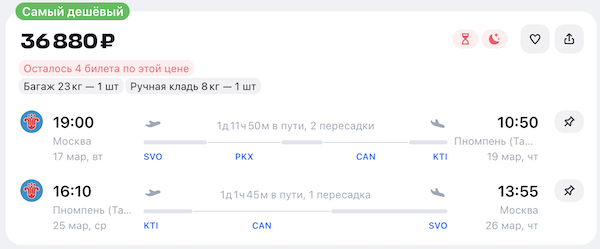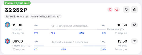 Из Москвы в Камбоджу 32 200 рублей