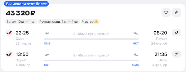 Прямые чартерные рейсы из Омска и Перми на Пхукет от 43.300 рублей туда-обратно.