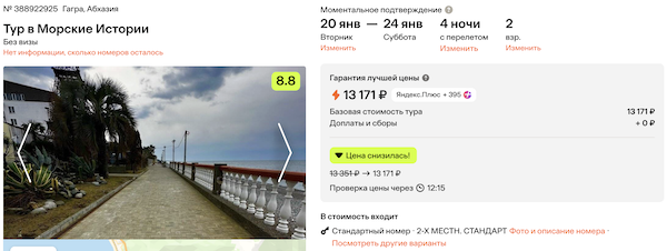Морские Истории, Гагра 6.600 рублей за человека (13.200 рублей за двоих)