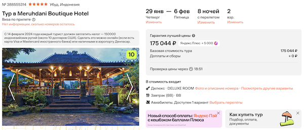 Meruhdani Boutique Hotel 5* с завтраками 87.500 рублей за человека (175.000 рублей за двоих)