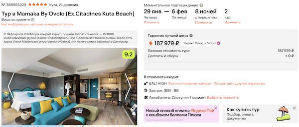 На Бали в 5*: туры из Москвы от 87.500 рублей за человека.