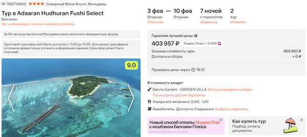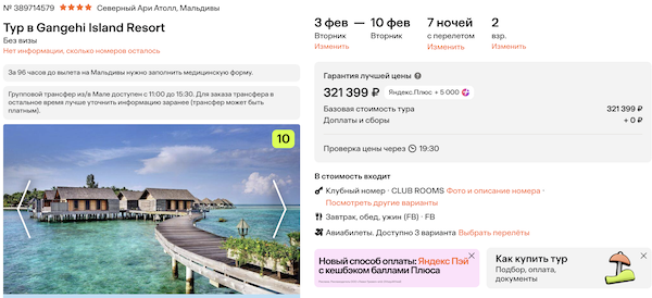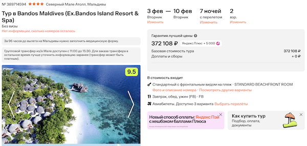 Туры из Москвы на Мальдивы от 160.700 рублей за человека, питание включено.