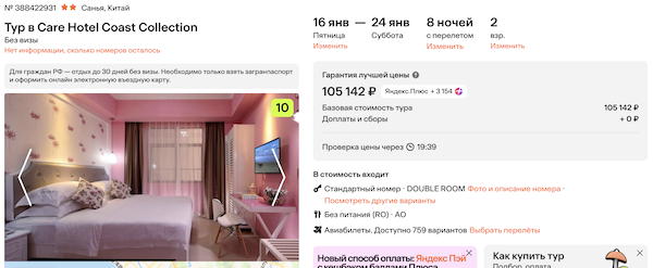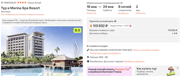 Туры из Москвы на Хайнань на неделю в январе от 52.500 рублей за человека.