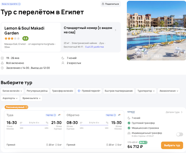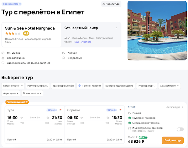 Туры из Москвы в Египет на неделю в январе от 24.400 рублей за человека, все включено.