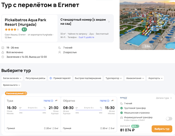 Pickalbatros Aqua Park Resort 4* 40.500 рублей за человека (81.100 рублей за двоих)