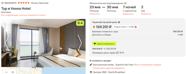 Туры из Москвы во Вьетнам на неделю в январе от 62.700 рублей за человека.