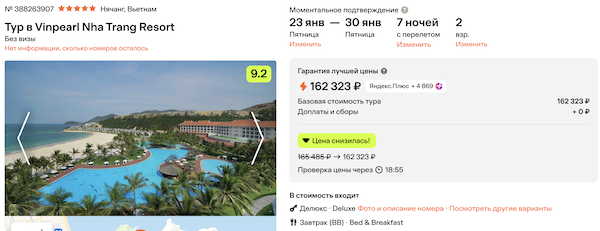 Vinpearl Nha Trang Resort 5* с завтраками 81.100 рублей за человека (162.300 рублей за двоих)