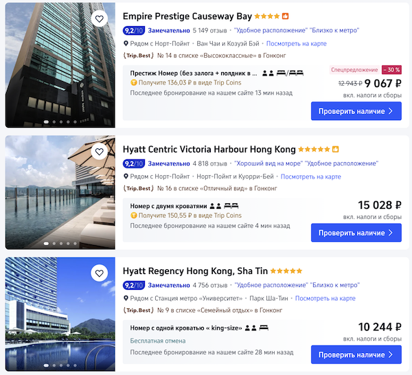 Отели с оплатой российской картой на трип.ком