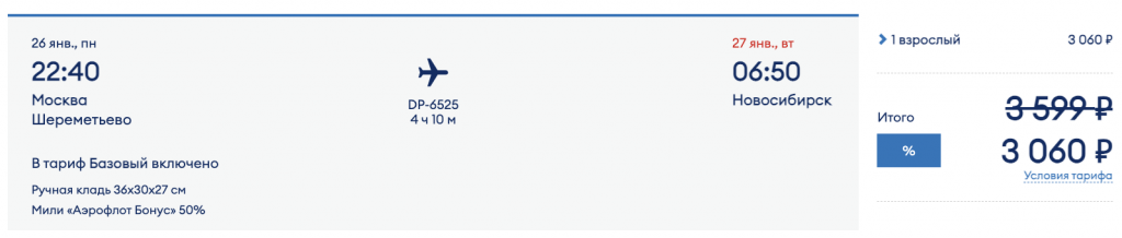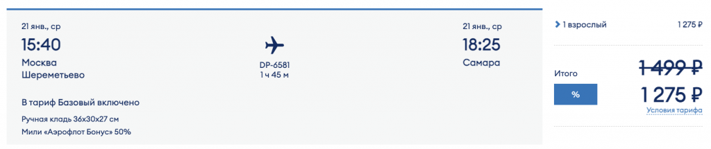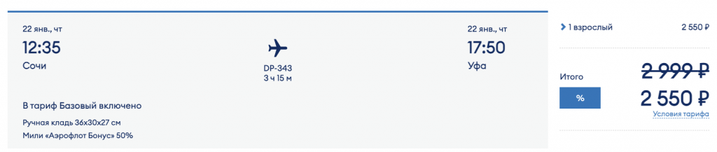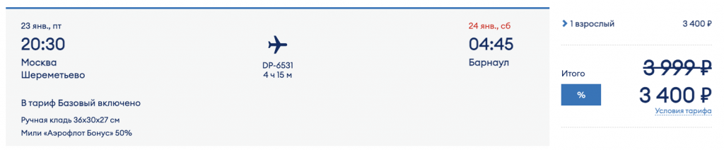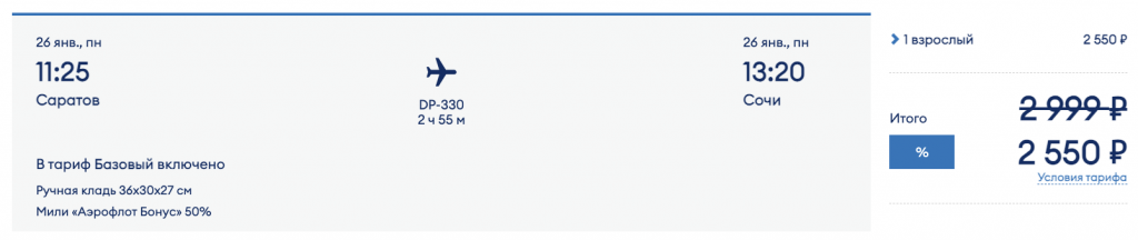 У авиакомпании Победа распродажа: скидки на билеты до 20% по промокоду SUGROB.