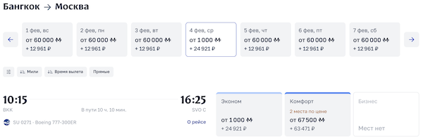 Москва — Бангкок — Москва 2.000 миль и 48.000 рублей