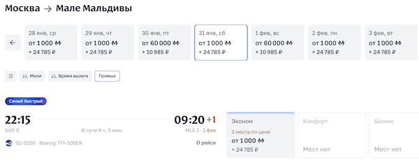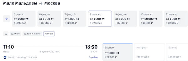 Москва — Мальдивы — Москва 2.000 миль и 57.500 рублей