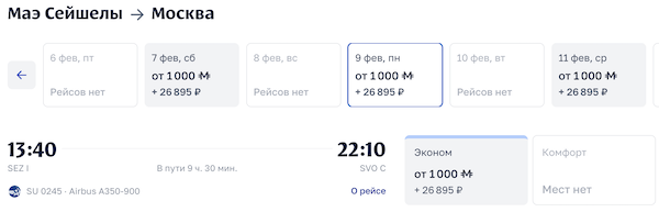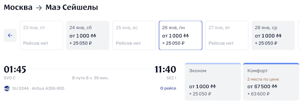 Москва — Сейшелы — Москва 2.000 миль и 51.900 рублей